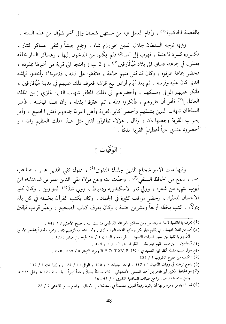 (¬3) ميّافارقين: من مدن اقليم ديار بكر. انظر المصدر السابق 2/ 494.
