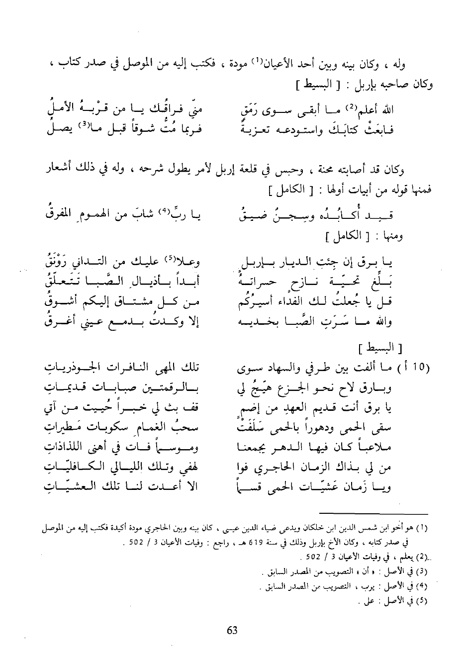 وله، وكان بينه وبين أحد الأعيان (¬1) مودة، فكتب إليه من الموصل في صدر كتاب، وكان صاحبه بإربل: [البسيط]