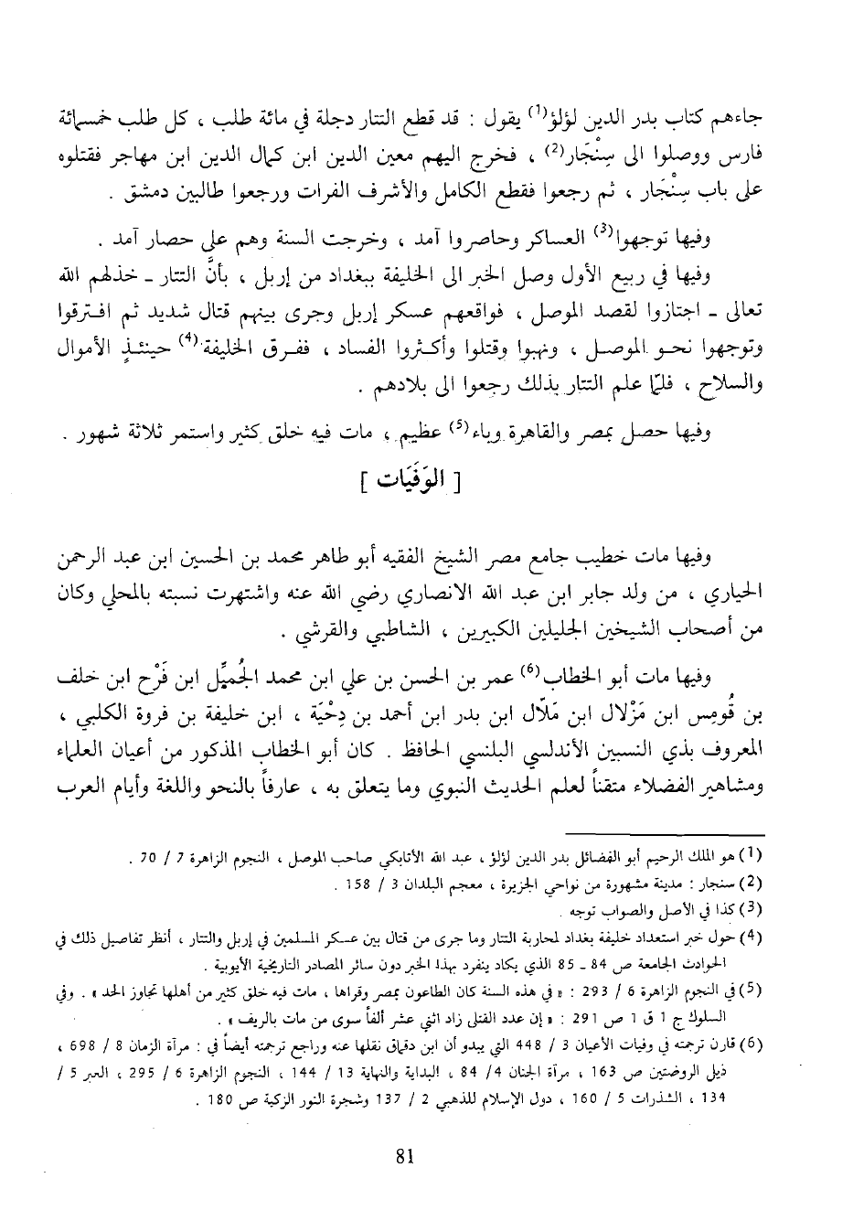 (¬4) حول خبر استعداد خليفة بغداد لمحاربة التتار وما جرى من قتال بين عسكر المسلمين في إربل والتتار، أنظر تفاصيل ذلك في الحوادث الجامعة ص 84 - 85 الذي يكاد ينفرد بهذا الخبر دون سائر المصادر التاريخية الأيوبية.