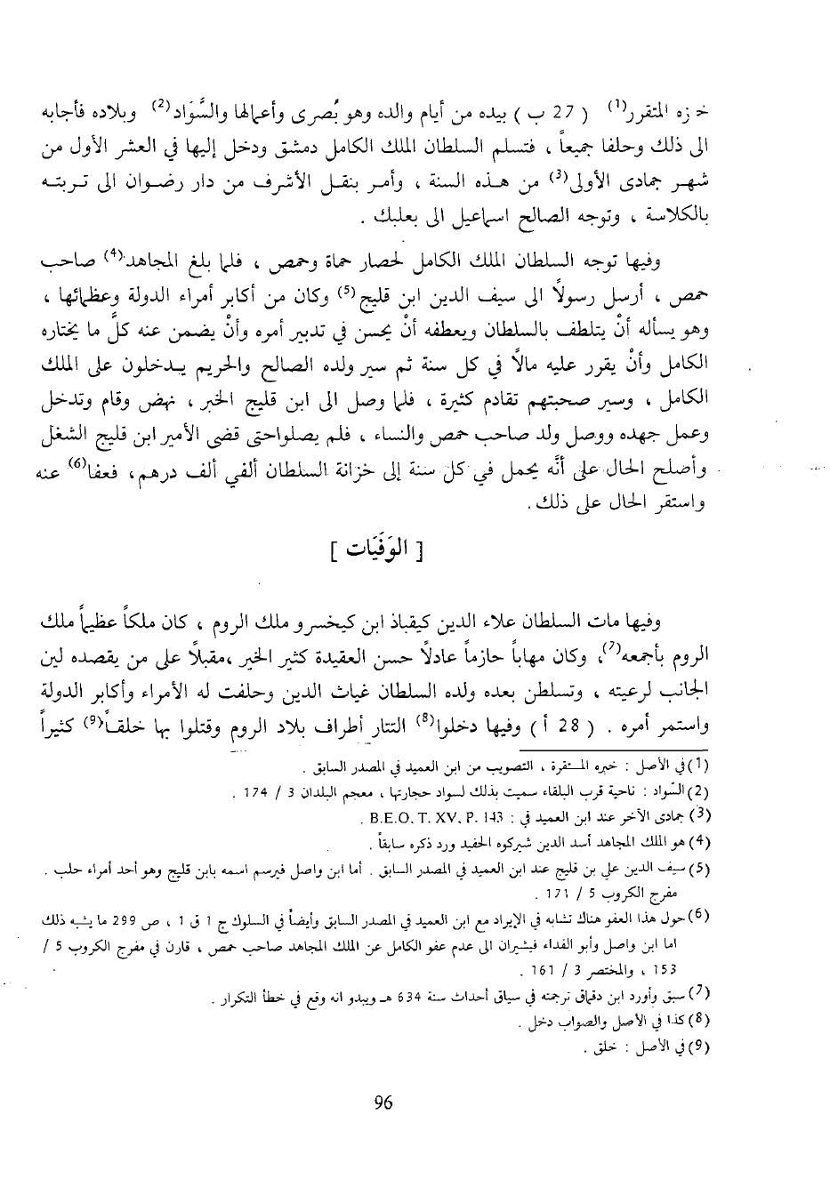 (¬6) حول هذا العفو هناك تشابه في الإيراد مع ابن العميد في المصدر السابق وأيضا في السلوك ج 1 ق 1، ص 299 ما يشبه ذلك اما ابن واصل وأبو الفداء فيشيران الى عدم عفو الكامل عن الملك المجاهد صاحب حمص، قارن في مفرج الكروب 5/ 153، والمختصر 3/ 161.
