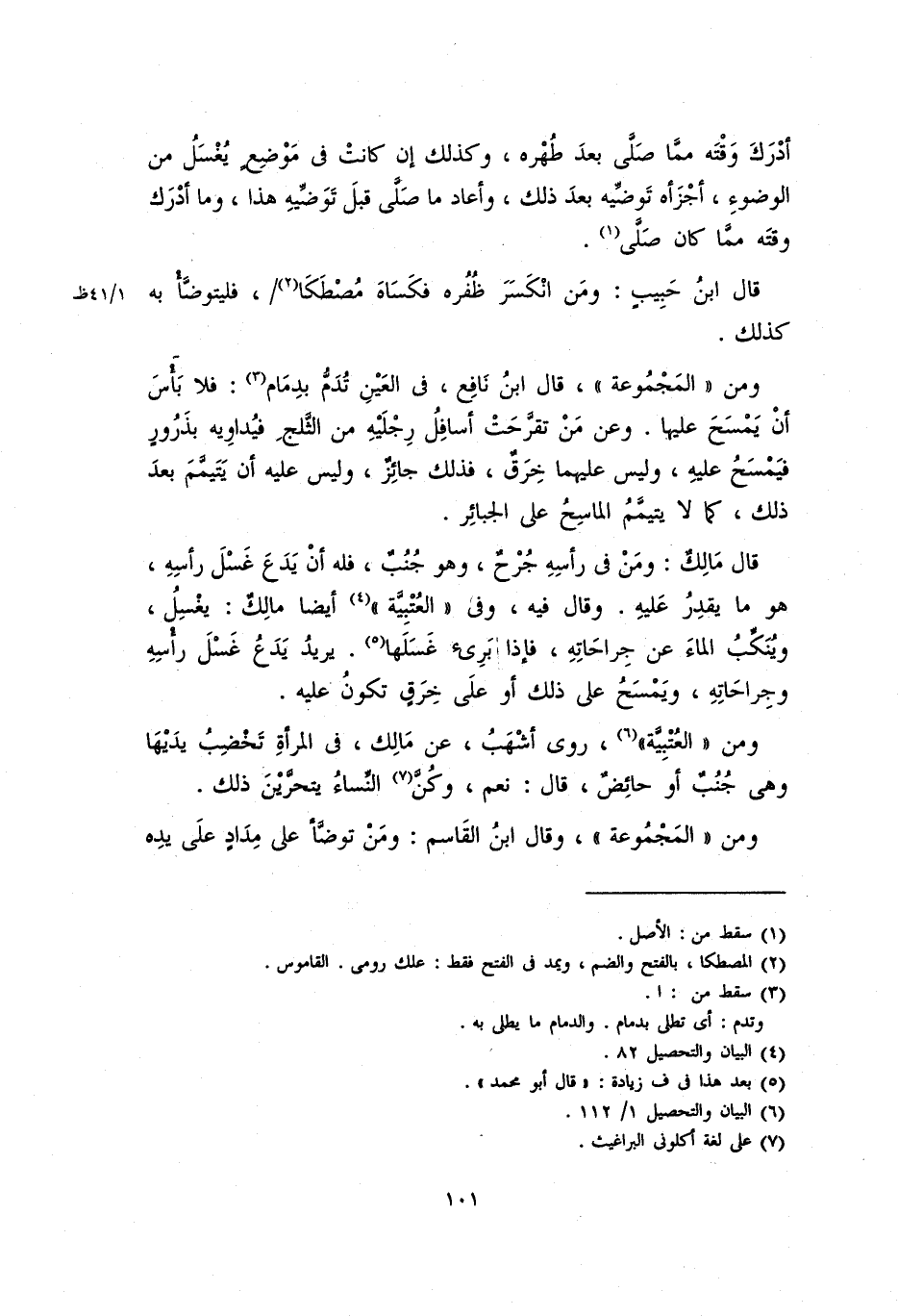 ومن المجموعة، وقال ابن القاسم: ومَنْ تَوَضَّأَ على مدادٍ على يدِه