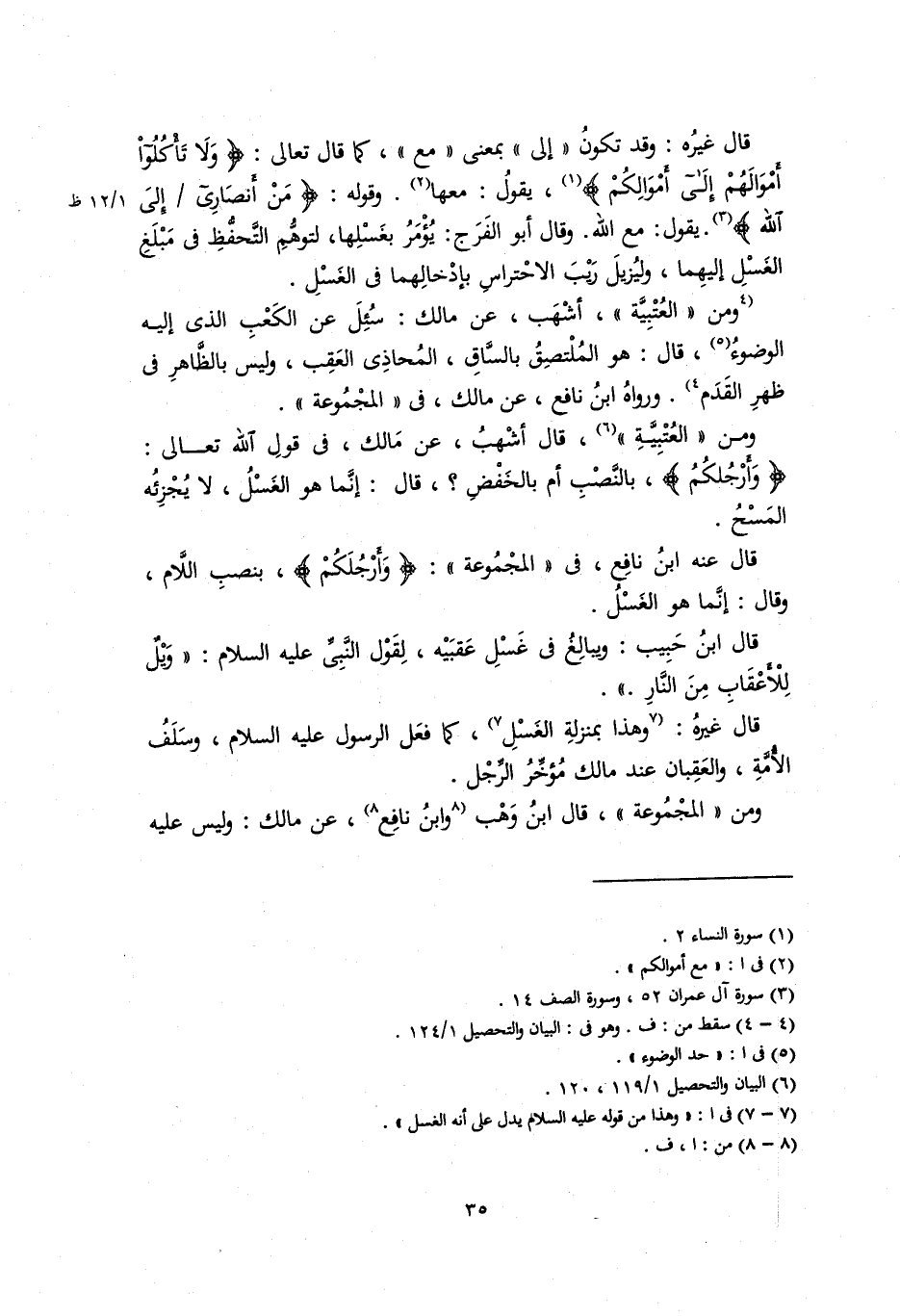 قال عنه ابن نافع في المَجْمُوعَة: {وَأَرْجُلَكُمْ}، بنصب اللام، وقال: إنما هو الغَسْل.