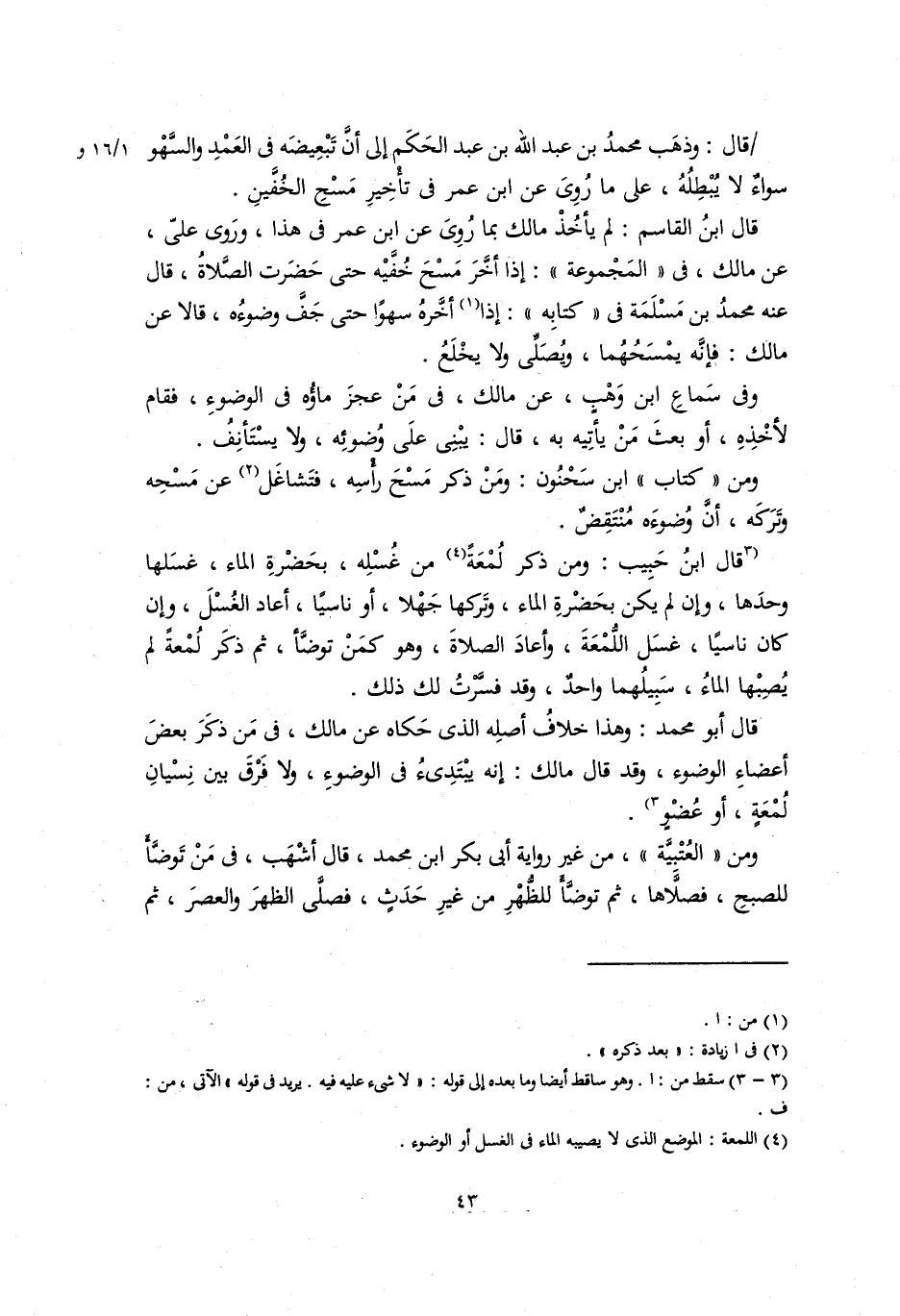 قال: وذهب محمد بن عبد الله بن عبد الحكم إلى أن تبعيضه في العمي والسهو سواء لا يُبْطِلُهُ، على ما روي عن ابن عمر في تأخير مَسْحِ الخُفَّيْن.