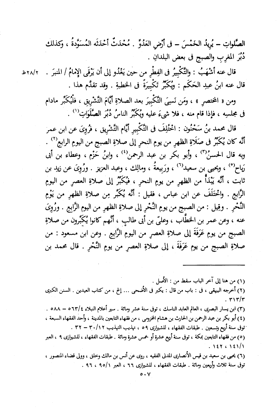 قال محمد ابن سحنون: اختلف في التكبير أيام التشريق، فروى عن ابن عمر أنه كان يكبر في صلاة الظهر من يوم النحر إلى صلاة الصبح من اليوم الرابع.