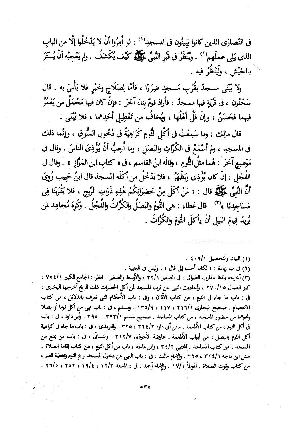 في النصارى الذين كانوا يبيتون في المسجد: لو أمروا أن لا يدخلوا إلاَّ من الباب الذي يلي عملهم. وينظر في قبر النبي صلى الله عليه وسلم كيف يكشف. ولم يعجبه أن يستر بالخيش، ولينظر فيه.