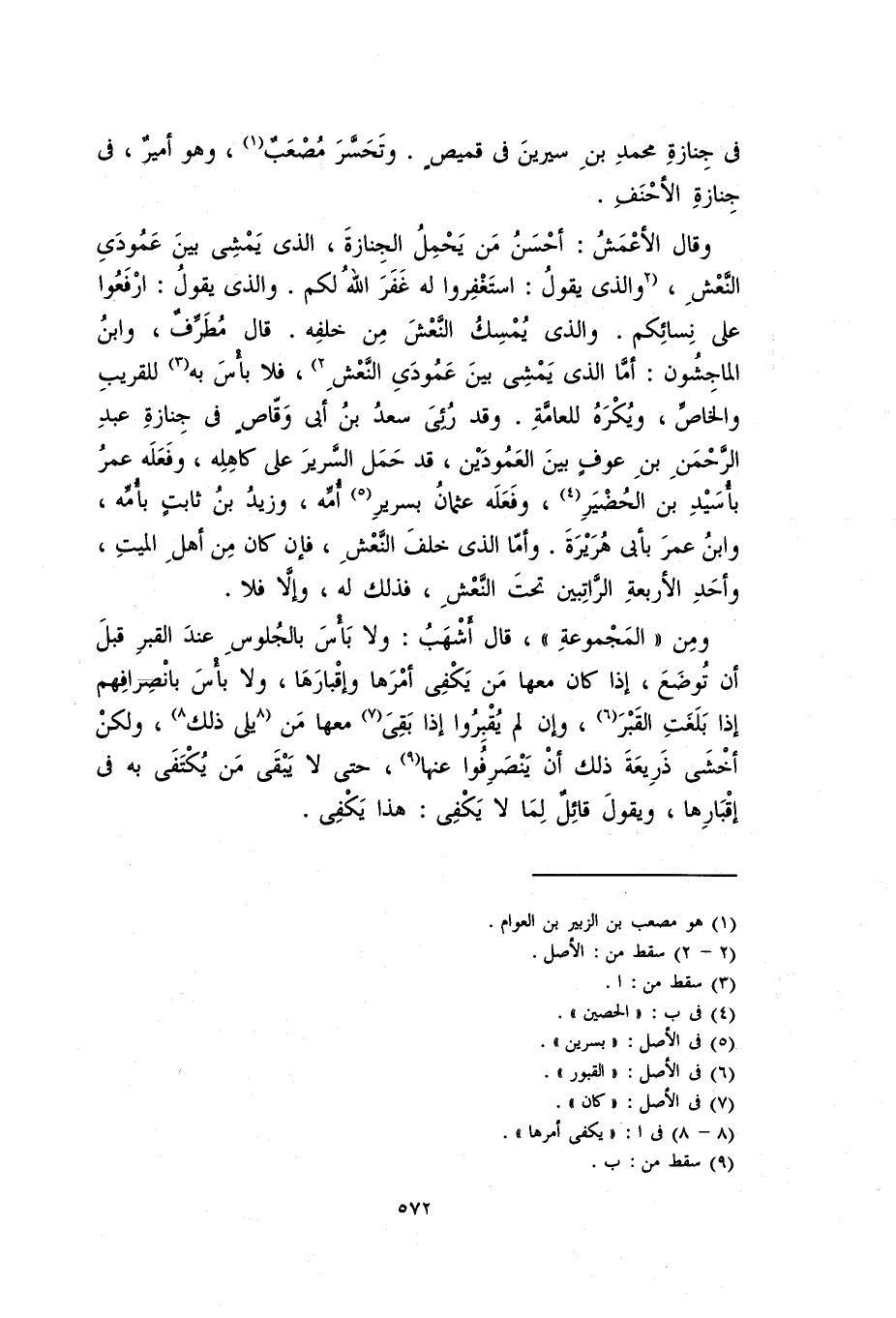 في جنازة محمد بن سيرين في قميص. وتحسر مصعب، وهو أمير، في جنازة الأحنف.