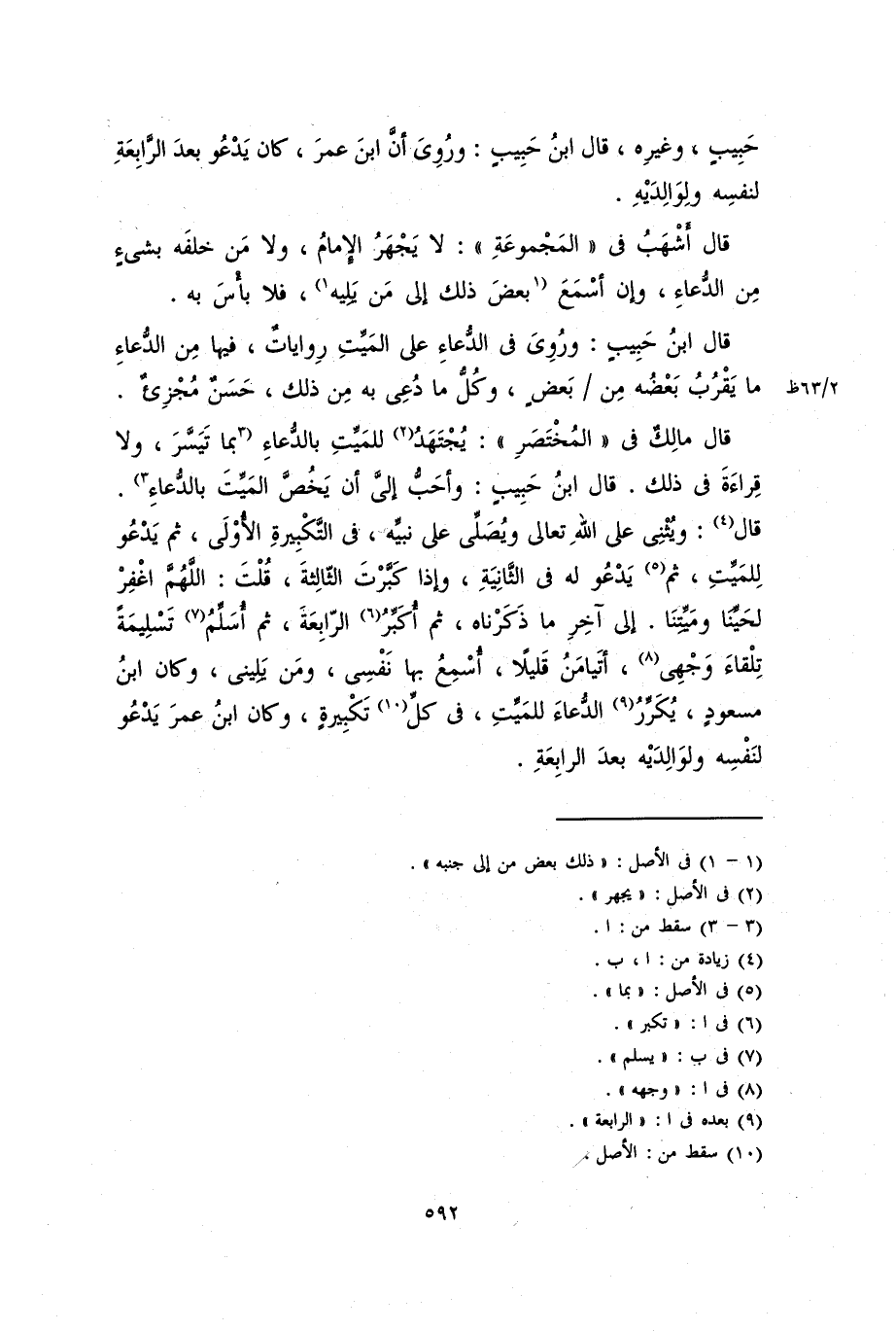 حبيب، وغيره، قَالَ ابْنُ حَبِيبٍ: وَرَوَى أن ابن عمر، كان يدعو بعد الرابعة لنفسه ولوالديه.