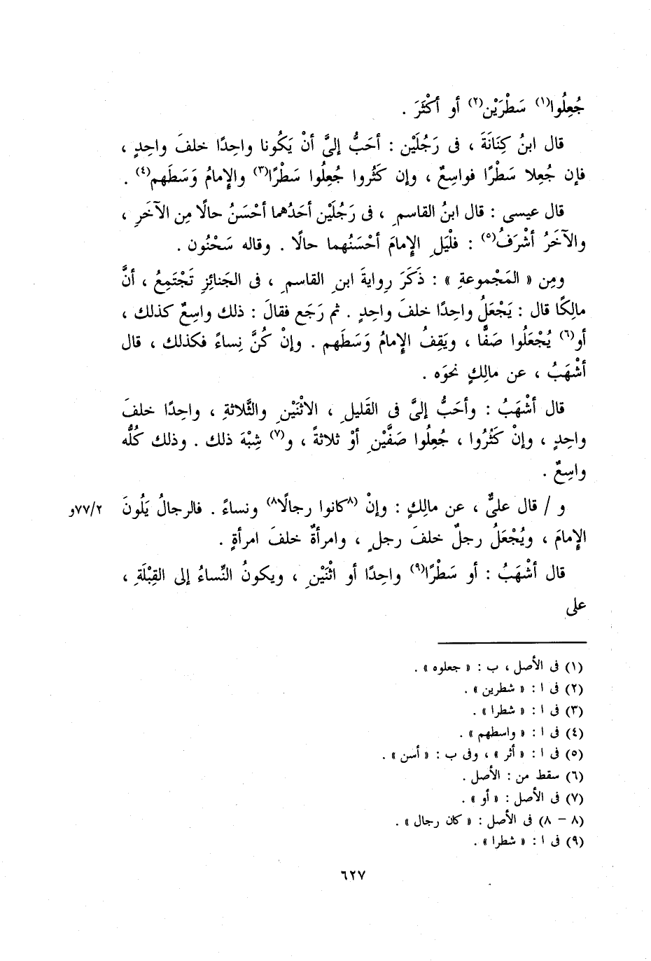 قال أشهب: أو سطرا واحدا أو اثنين، ويكون النساء إلى القبلة، على