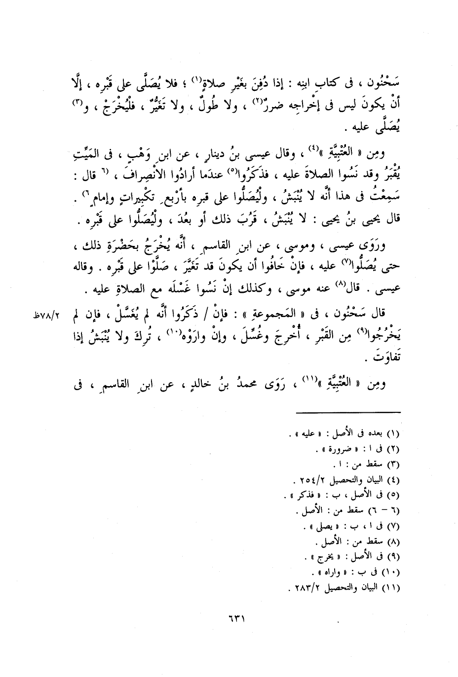 ومن الْعُتْبِيَّة، وقال عيسى بن دينار، عَنِ ابْنِ وهب، في الميِّتِ يُقبر وقد نسوا الصلاة عليه، فذكروا عندما أرادوا الانصراف، قال: سمعت في هذا أنه لا يُنْبَشُ، ولْيُصَلُّوا على قبره بأربع تكبيرات وإمام. قال يحيى بن يحيى: لا يُنْبَشُ قَرُبَ ذلك أو بعُدَ، ولْيُصَلُّوا على قبره.