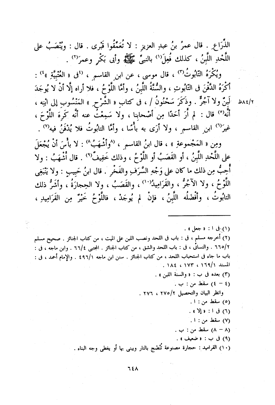 ومن المجموعة، قَالَ ابْنُ الْقَاسِمِ، وأشهب: لا بأس أن يُجعل على اللحد اللَّبِنُ، أو القصب أو اللوح، وذلك خفيف. قال أشهب: ولا أُحِبُّ من ذلك ما كان على وجه السرف والفخر. قَالَ ابْنُ حَبِيبٍ: ولا يَنْبَغِي اللوح، ولا الآجرُّ، والقراميد، والقصب، ولا الحجارة، وأشَرُّ ذلك التابوت، وأفضله اللَّبِنُ، فإن لم يوجدْ، فاللوحُ خيرٌ من القراميد،