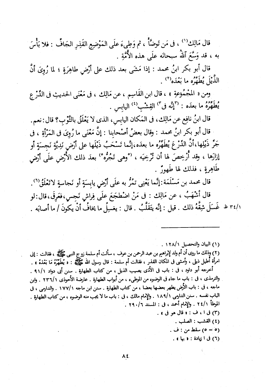 ومن المجموعة، قال ابن القاسم، عن مالك في مَعْنَى الحديث في الدِّرْعِ يُطَهِّرُه ما بعده: إنه في القِشْبِ اليابس.