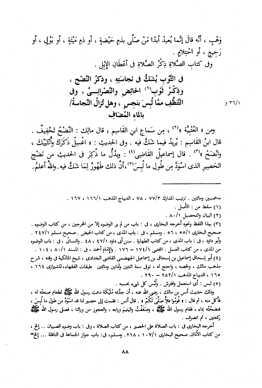 ومن الْعُتْبِيَّة، من سماع ابن القاسم، قال مالك: النضح تخفيف.