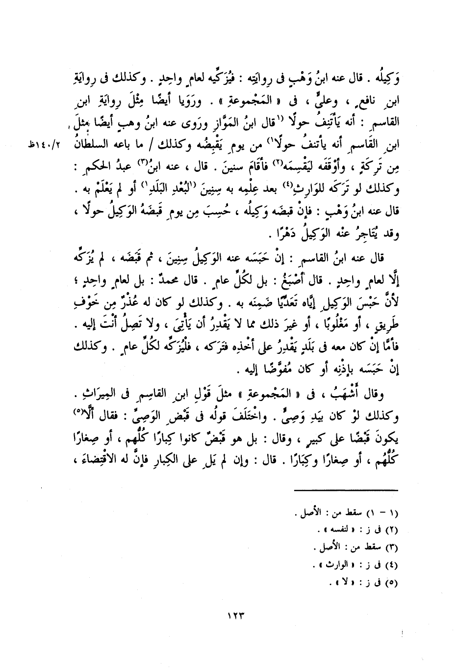 قال عنه ابن وهبٍ: فإنْ قبضه وكيله، حُسِبَ من يوم قبضه الوكيل حولاً، وقد يُتاجر عنه الوكيل دهراً.