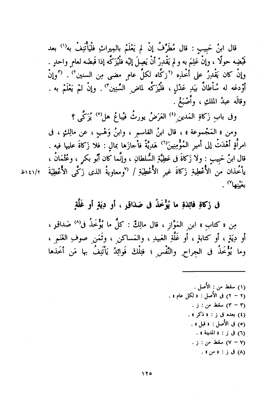 قال ابن حبيبٍ: ولا زكاة في عطيَّةِ السلطانِ، وإنَّمَا كان أبو بكرٍ، وعثمان، يأخذان من الأُعطيةِ زكاةَ غير الأعطيةِ ومعاويةُ الذي زَكَّى الأُعطيةَ بعينها.