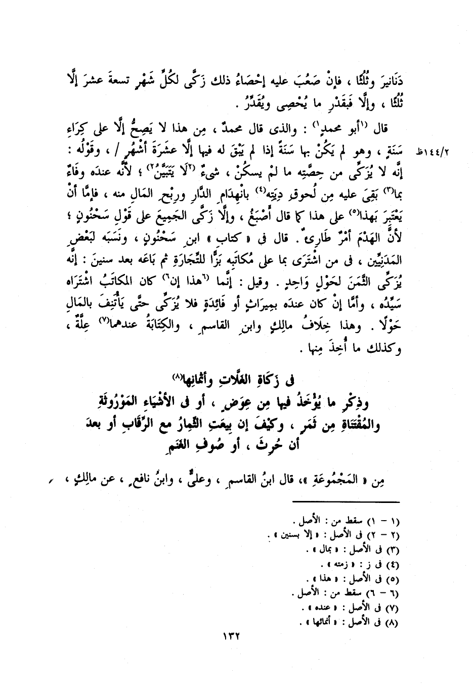 من "المَجْمُوعَة"، قال ابن القاسم، وعليٌّ، وابنِ نافعٍ، عن مالكٍ،