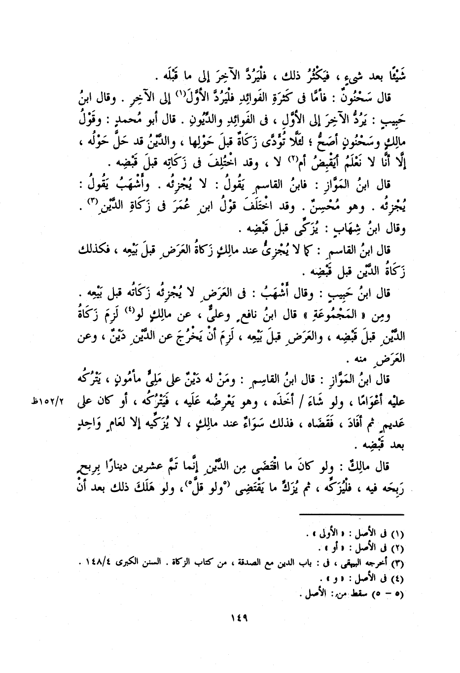 قال سحنونٌ: فأمَّا في كثرةِ الفوائد فليردَّ الأول إلى الآخرِ. وقال ابنُ حبيبٍ: يرُدُّ الآخر إلى ألأول، في الفوائد والديون، قال ابو محمد: وقولُ مالكٍ وسحنونٍ أصحُّ؛ لئلا تؤدي قبلَ حولِهَا، والدَّيْنُ قد حلَّ حوله، إلاَّ أنَّا لا نعلم أيقبض أم لا، وقد اختلف في زكاته قبل قبضه.