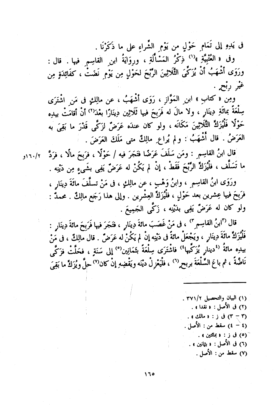 ورَوَى ابن القاسمِ، وابن وهبٍ، عن مالكٍ، فِي مَنْ تسلَّفَ مائة دينارٍ، فربح فيها عشرين بعد حولٍ، فليزك العشرين. وإلى هذا رجع مالكٌ. محمدٌ: ولو كان له عرضٌ يفي بدينه، زكَّى الجميعَ.
