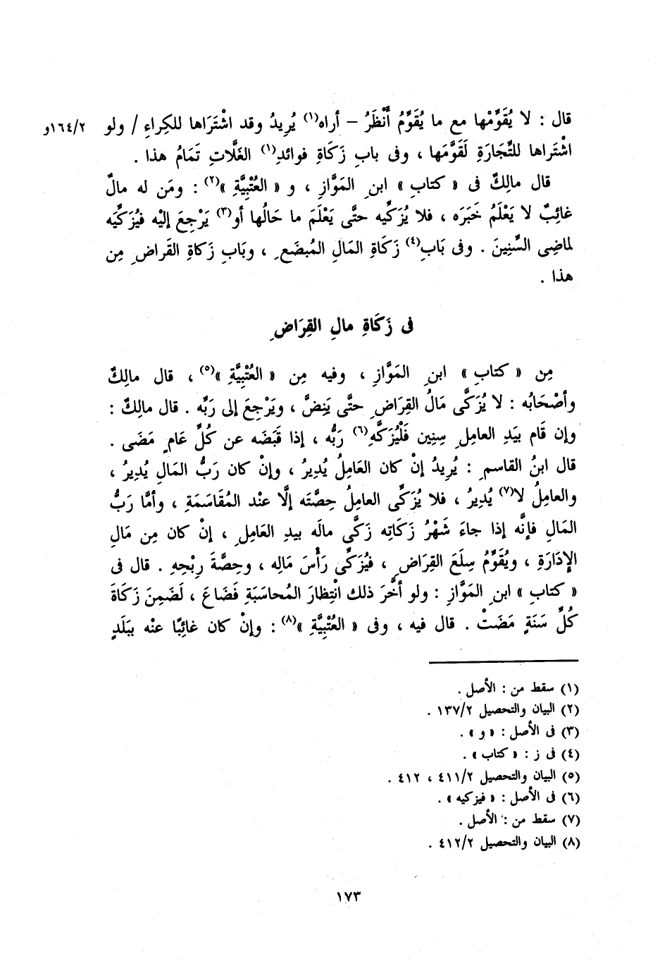 من "كتاب " ابن الْمَوَّاز، وفيه من "المَجْمُوعَة"، قال مالكٌ وأصحابه: لا يزكِّي مالُ القراض حتى ينضَّ، ويرجع إلى ربِّه. قال مالكٌ: وإن قام بيدِ العاملِ سنين فليزكِّه ربه، إذا قبضه عن كل عام]