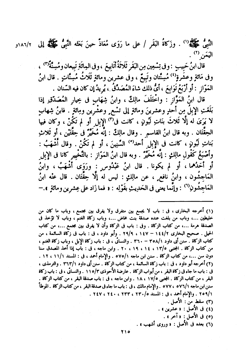 النبي صلى الله عليه وسلم. وزكاة البقرِ على ما روى مُعاذٌ حين بعثه النبي صلى الله عليه وسلم إلى اليمنِ.