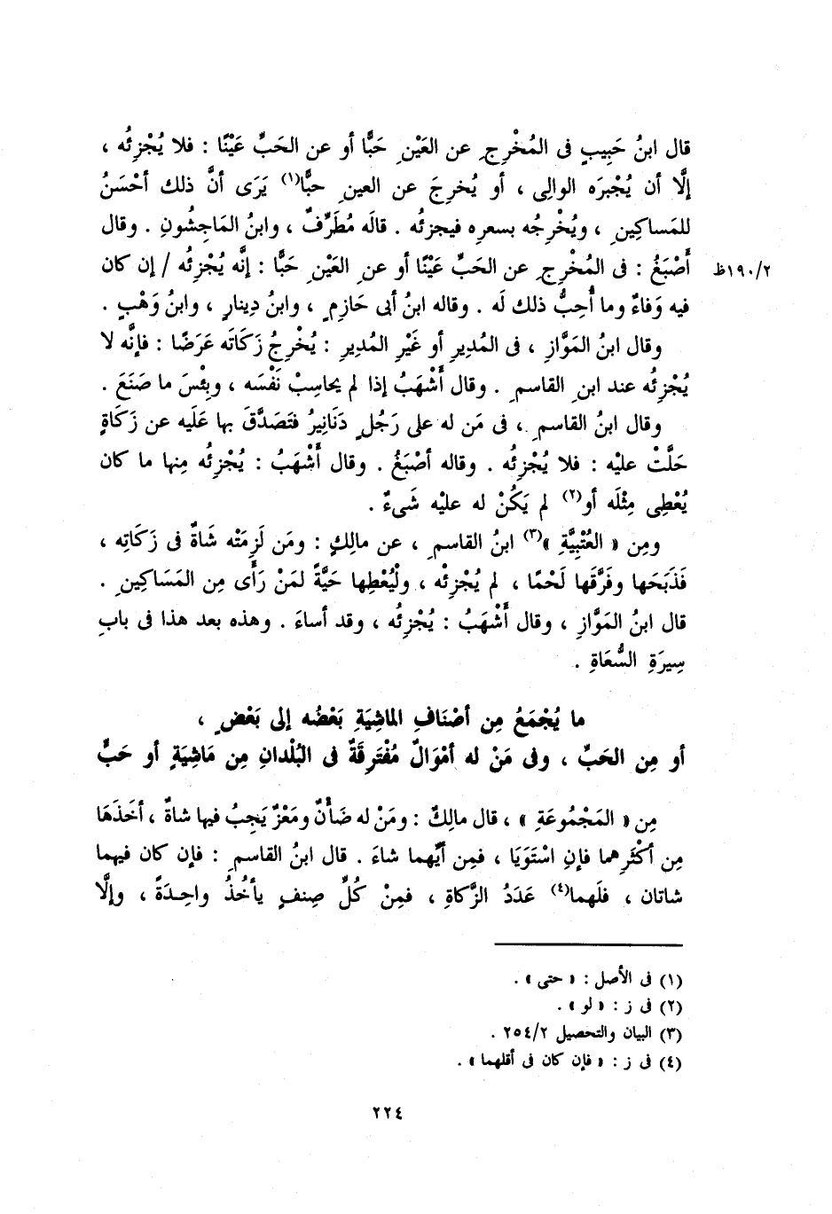 قال ابن حبيبٍ في المخرج عن العينِ حَبًّا أو عن العين حَبًّا: فلا يُجْزِئُهُ، إلاَّ أنْ يُجبره الوالي، أو يخرج عن العينِ حَبًّا يرى أنَّ ذلك أحسنُ للمساكين، ويجزئه بسعره فيجزئه. قاله مطرِّفٌ، وابن الماجشون. وقال أصبغُ: في المخرج عن الحَبِّ عيناً أو عن العين حَبًّا: إنَّه يُجْزِئُهُ إن كان فيه وفاءٌ وما أحبُّ ذلك له. وقاله ابن أبي حازمٍ، وابن دينارٍ، وابن وهبٍ.