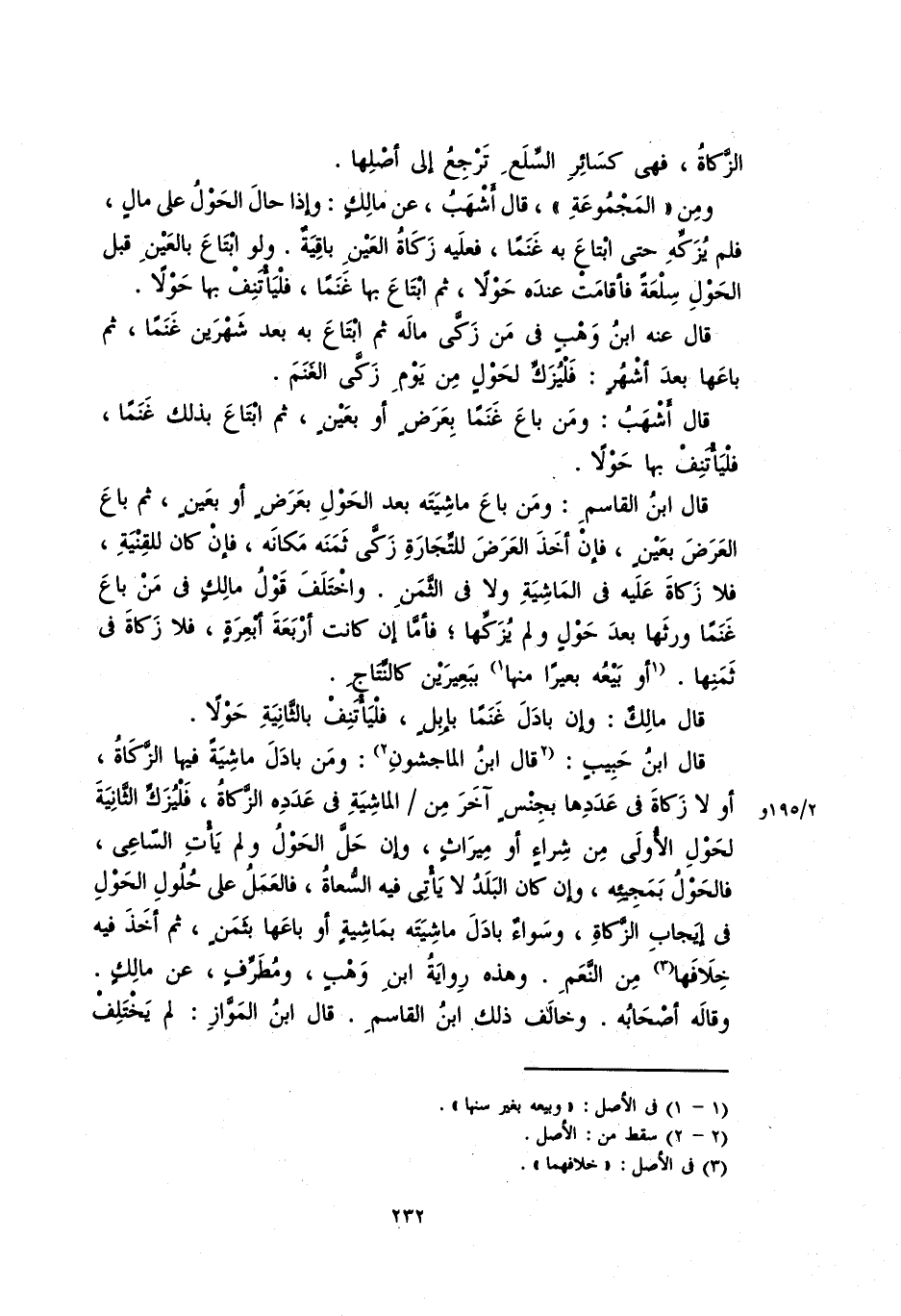 قال عنه ابن وهبِ فِي مَنْ زكَّى مالَه ثم ابتاعَ به بعد شهرين غنماً، ثم باعها بعدِ أشهرٍ: فليُزكِّ لحولٍ من يوم زكَّى الغنمَ.