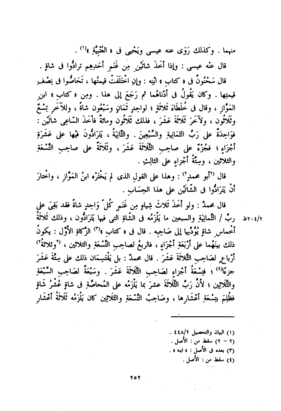 قال عنه عيسى: وإذا أخذَ شاتين من غنمِ أحدهم ترادُّوا في شاةٍ.