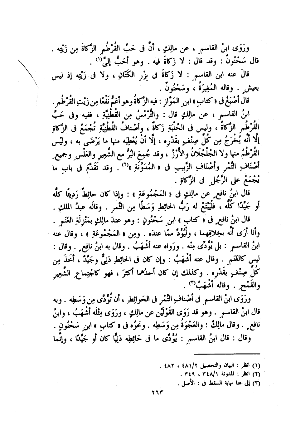 ورَوَى ابنالقاسم، عن مالكٍ، أنَّ في حَبِّ القُرطمِ الزكاة من زيته.