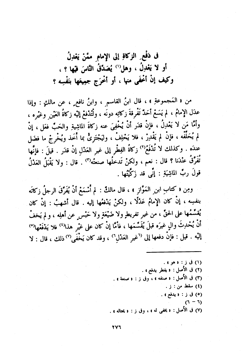 في دفع الزكاةِ إلى ألإمامِ ممن يَعْدِلُ