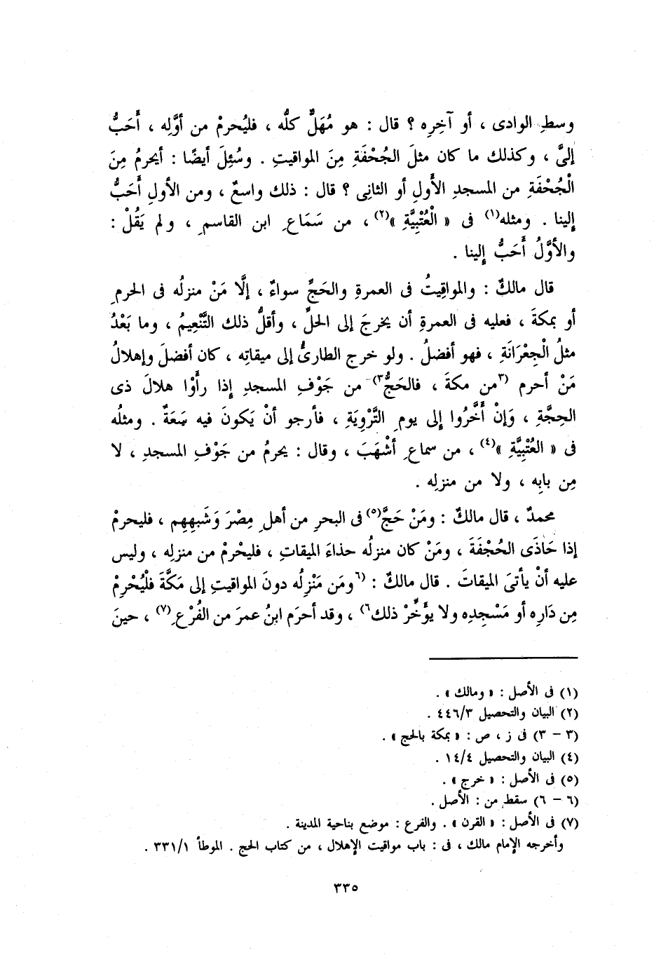 وسطِ الوادي، أو آخره، قال: هو مهلٌّ كله، فليحرم من أوله، أحبُّ إليَّ، وكذلك ما كلن مثلَ الجُحفةِ من المواقيت. وسئل أيضا: أيحرم منَ الجُحفةِ من المسجد الأول أو الثاني؟ قال: ذلك واسعٌ، ومن الأول أحبُّ إلينا. ومثله في "العُتْبِيَّة"، من سماع ابن القاسمِ، ولم يقل: والأول أحب إلينا.