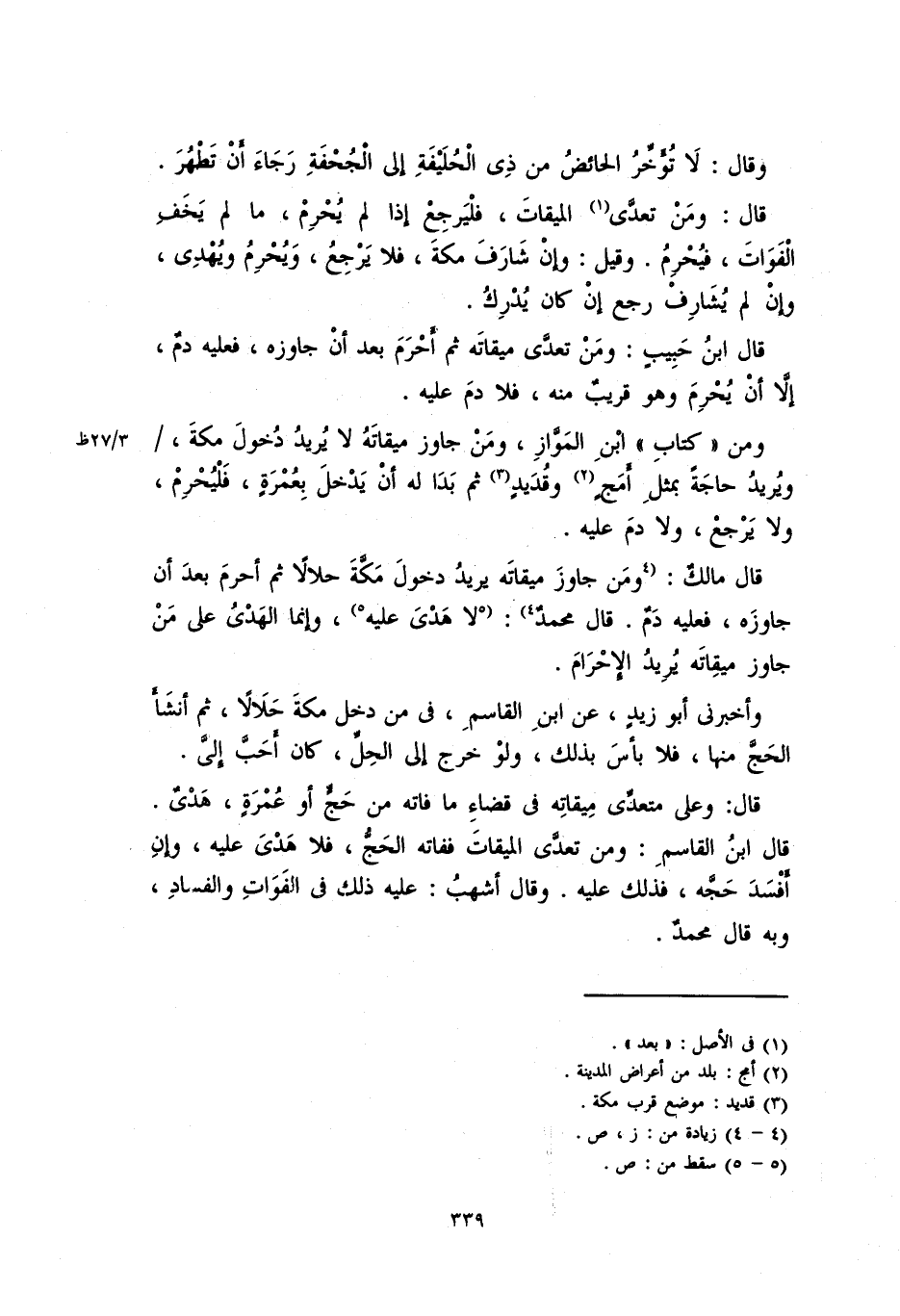 قال ابن حبيبٍ: ومَن تعدَّى ميقاته ثم أحرم بعد أن جاوزه، فعليه دمٌ، إلا أنْ يحرم وهو قريب منه، فلا دم عليه.