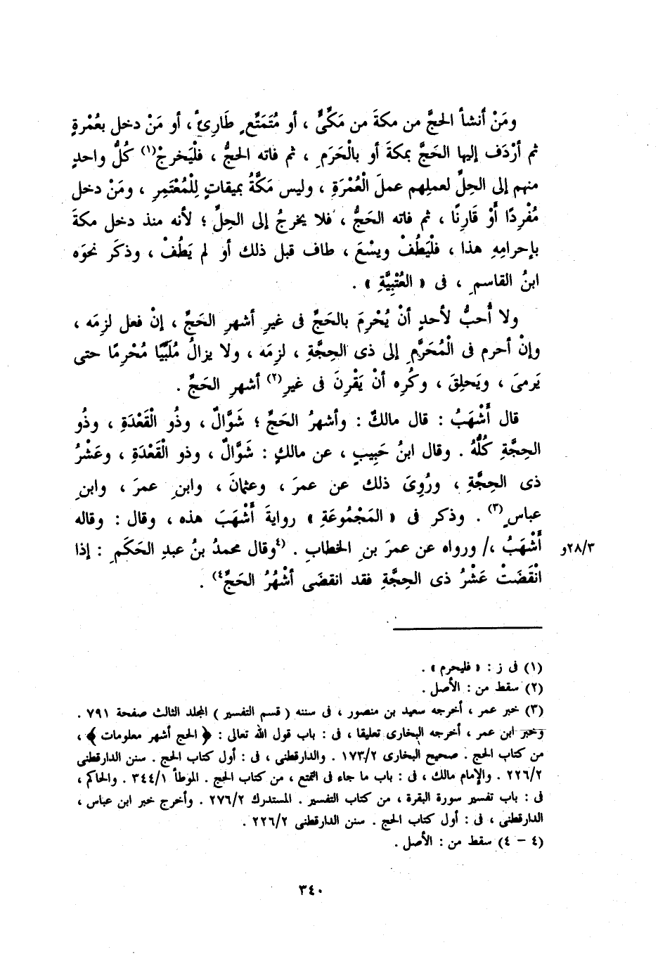 قال أشهبُ: قال مالكٌ: وأشهر الحجِّ، شوال، وذو القعدة، وذو الحجة كله. وقال ابن حبيبٍ، عن مالكٍ: شوال، وذو القعدة، وعشر ذي الحجةِ، ورُوِيَ ذلك عن عمر، وعثمان، وابن عمر، وابن عباسٍ. وذكر في "المَجْمُوعَة" رواية أشهب هذه، وقال: وقاله أشهبُ، ورواه عن عمر بن الخطابِ. وقال محمد بن عبد الحكمِ: إذا انقضتْ عشر ذي الحجة فقد انقضى أشهر الحجِّ.