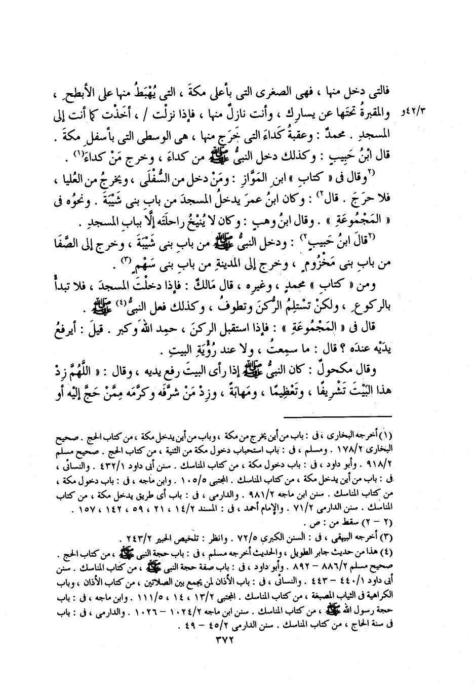 قال ابن حبيبٍ: وكذلك دخل النبي صلى الله عليه وسلم من كداءَ، وخرج من كداءَ.
