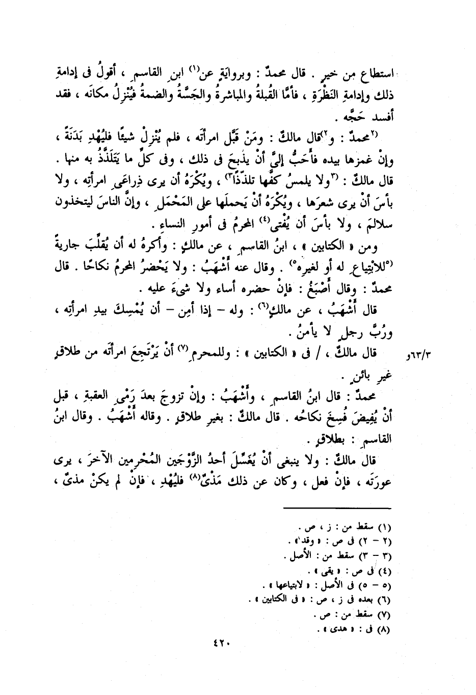 استطاع من خيرٍ، قال محمدٌ: وبرواية عن ابن القاسمِ، أقول في إدامة ذلك وإدامة النظرة، فأما القُبلة والمباشرة والجسَّة والضمةُ فينزل مكانَه، فقد أفسد حجه.