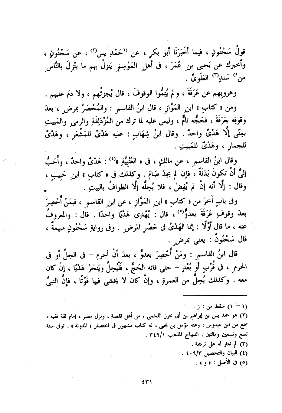 قول سحنونٍ، فيما أخبرنا أبو بكرٍ، عن (حَمْدِ يس، عن سحنونٍ، وأخبرك عن يحيى بن عمر، في أهل المَوسمِ ينزل بهم ما ينزل بالناسِ من) سندٍ العلويِّ.