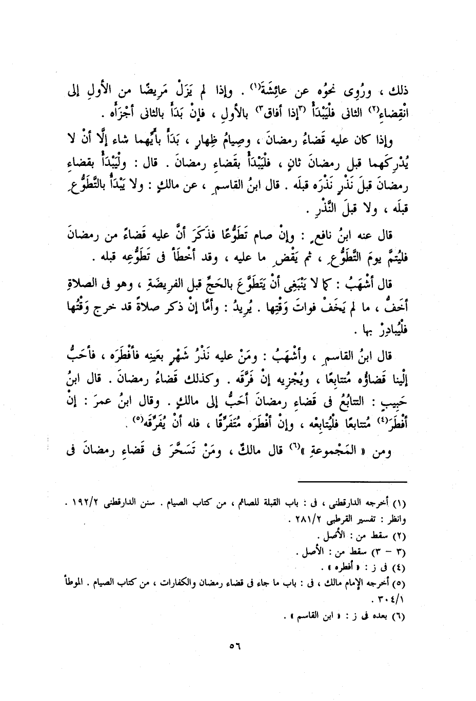 قال عنه ابن نافعٍ: وإنْ صام تطوُّعاً فذكرَ أنَّ عليه قضاءً من رمضانَ فليُتمَّ يوم التطوُّعِ، ثم يقضِ ما عليه، وقد أخطأ في تطوُّعهِ قبله.