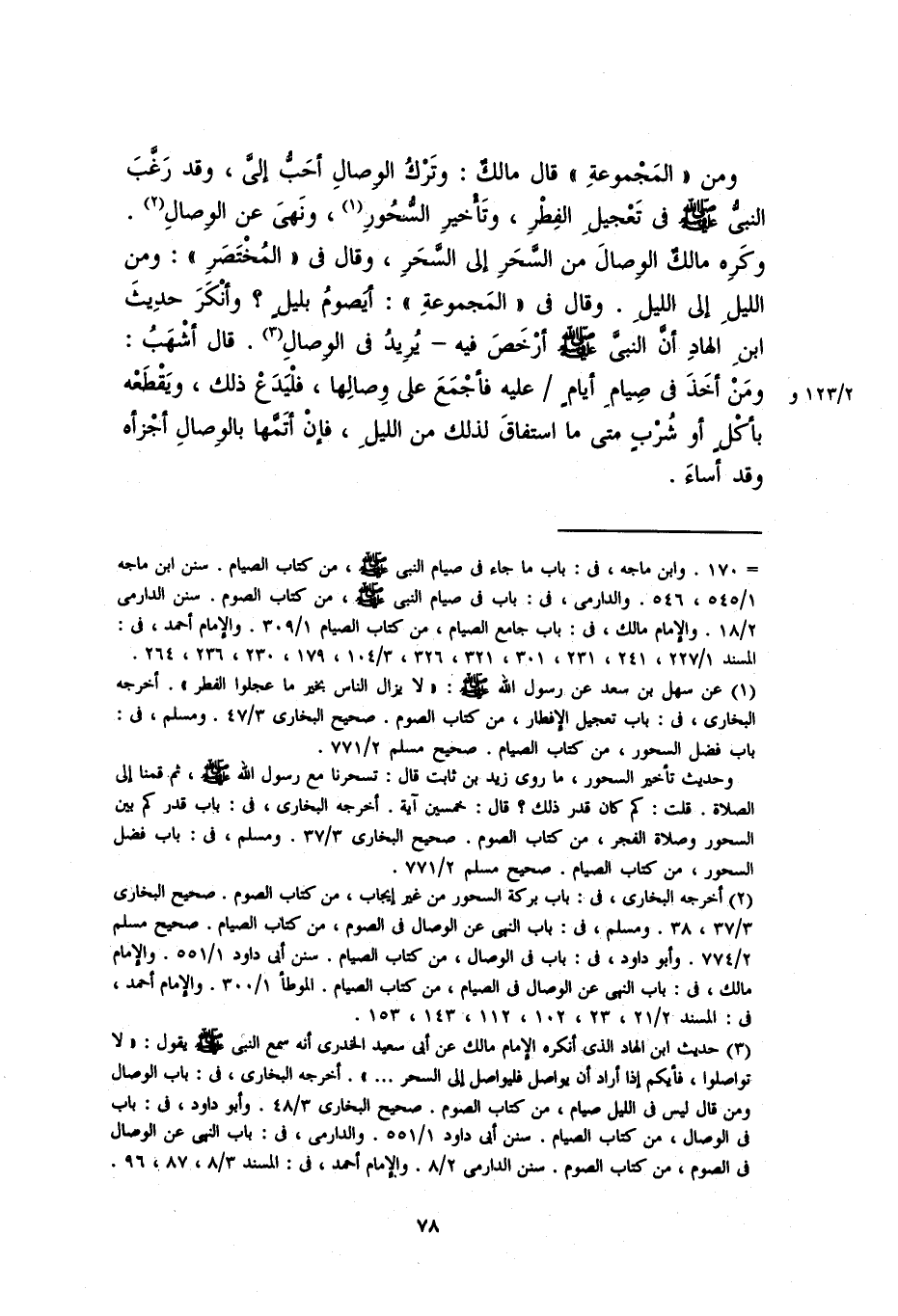 ومن "المَجْمُوعَة" قال مالك: وترك الوصال أحب إليَّ، وةقد رغَّبَ النبي صلى الله عليه وسلم في تعجيل الفطر، وتأخير السحور، ونُهِيَ عن الوصال. وكره مالك الوصال من السحر إلى السحرِ، وقال في "المختصر": ومن الليل إلى الليل. وقال في "المَجْمُوعَة": أيصوم بليلٍ؟ وأنكر حديث ابنِ الهاد أنَّ النبي صلى الله عليه وسلم أرخصَ فيه – يريد في الوصال. قال أشهبُ: ومَن أخذ في صيام أيامٍ عليه فأجمعَ على وصالها، فليدعْ ذلك، ويقطعه بأكلٍ أو شربٍ متى ما استفاق لذلك من الليل، فإنْ أتمَّهَا بالوصال أجزأه وقد أساء.