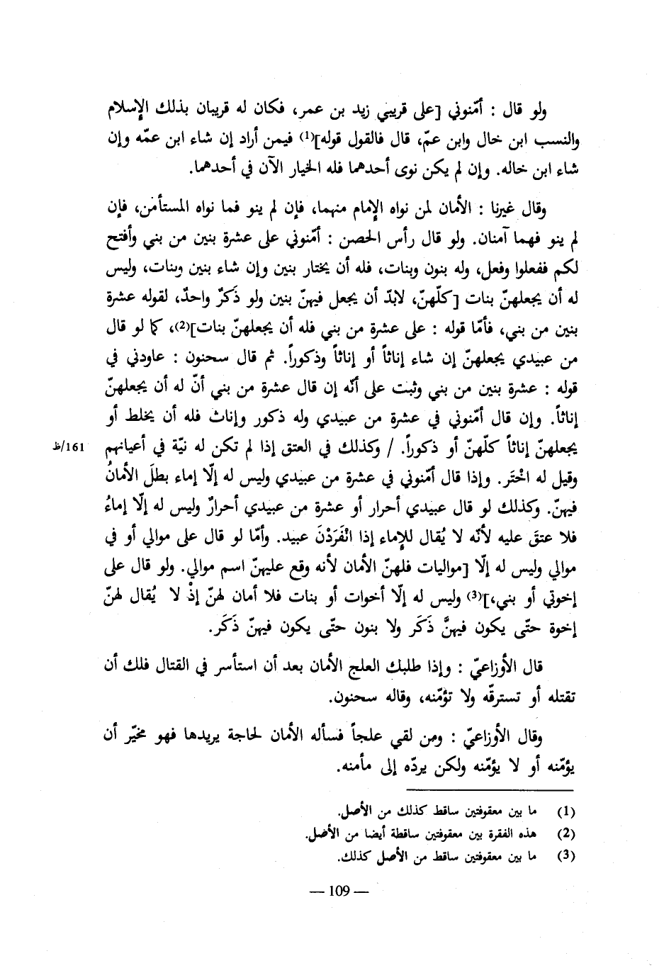 وقال سحنون وأهل العراق ولو كان قال عشرة أرؤس من رقيقي فنزل بمال , كان فيئاً ويطلب بالرقيق. ولو قال لم يدعني أهل الحصن أنزل بالرقيق فنزلت بالمال لأشتري به لم يصدق حتى يخبرنا قبل نزوله فنأذن له ولو يذكر في هذه المسائل نزولاُ ولا فتح الباب وقال أمنوني على كذا كان ذلك وذكره للنزول سواء في قياس قول سحنون.