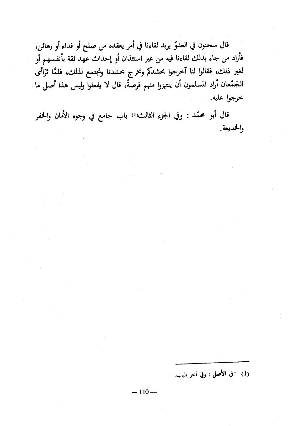 قال محمد: فإن أمنوه على هذا الذي لا يحل فهو آمن ويرد إلى مأمنه إلا أن يدع الألف فيتم أمانه , أو يترك إمام الجيش المائة دينار ويتم أمانه.
