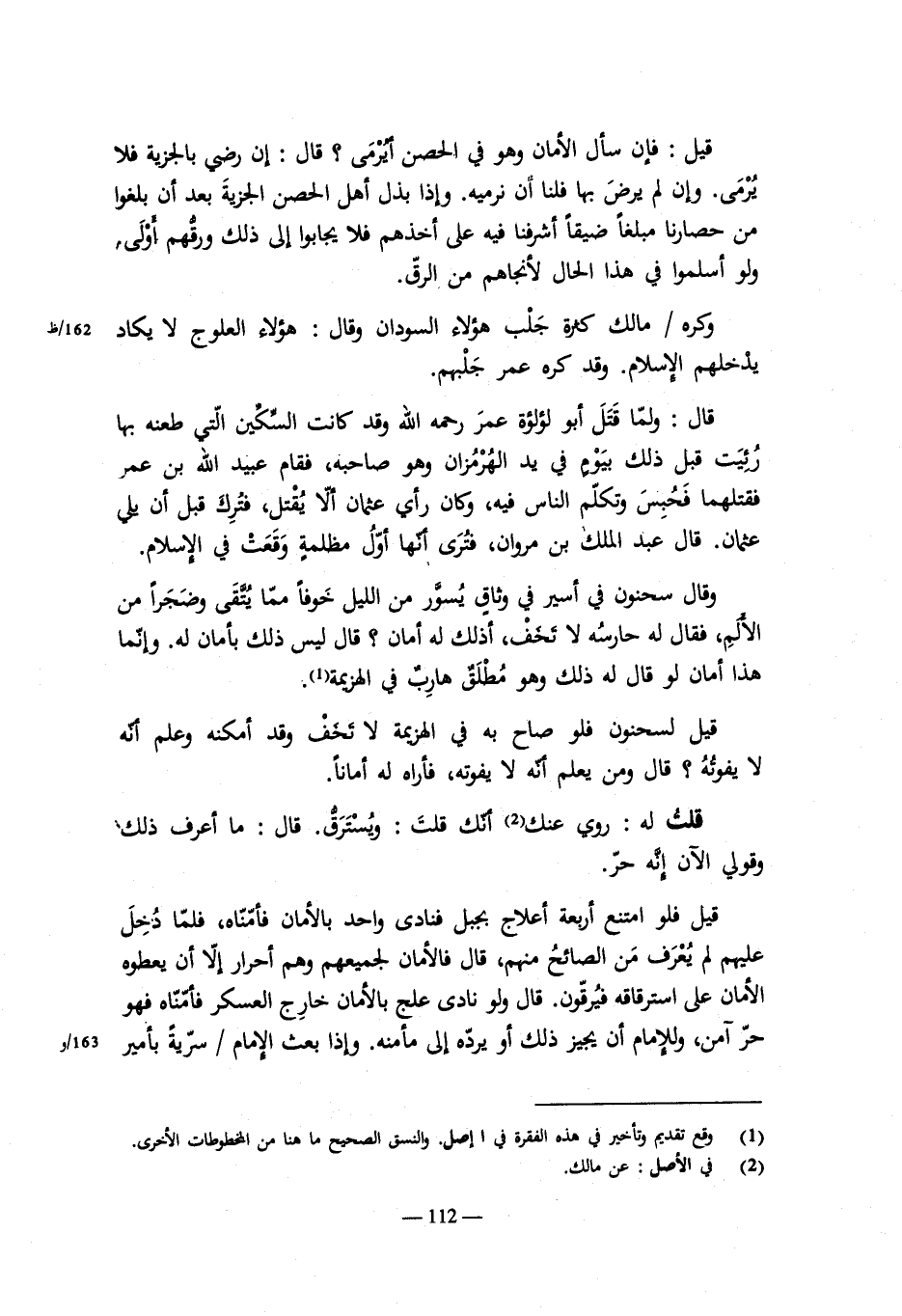 قال سحنون: وهذا رجوع إلى قولنا: وإن شرطوا ألا نقتل لهم أسيراً إذا أصبناهم على ألا يأسروا منا أحداً , فأصبنا أسرى لهم فليس لنا أن نسترقهم ولا نجعلهم فيئاً. وإن شرطوا ألا نأسرهم ولا يأسرونا فليس لنا أن نقتلهم. وأجاز غيرنا في رفع القتل الاسر , فلا فرق بين ذلك.