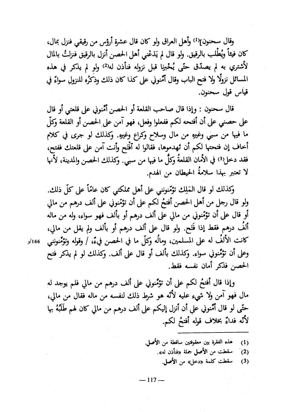وكذلك في كتاب ابن سحنون وقال: وللإمام – يريد إن ظهر عليهم قبل أن يقولوا هذا – أن يسترقهم أو يقتلهم إلا أن يسلموا فيكونوا رقيقاً للمسلمين , لا خمس فيهم ولا قسم , وقاله غير واحد من أصحاب مالك.