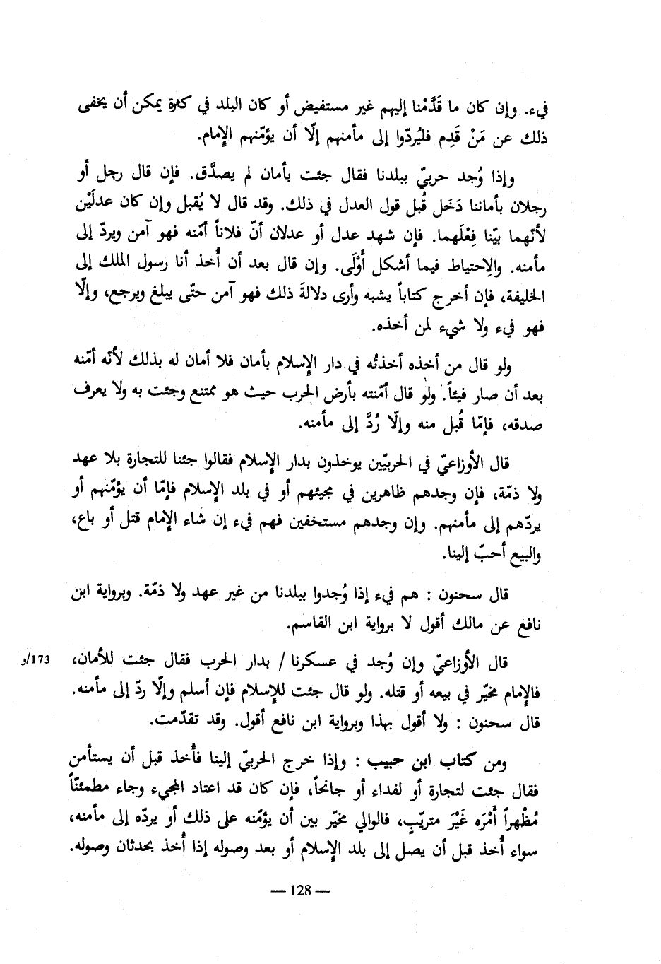 ومن كتاب ابن حبيب: وإذا وجد المستأمن مرتداً أو عبداً لمسلم أو لمعاهد أو مديان عليه دين للمسلمين: إنه يحكم فيه بحكم الإسلام ولا يحجزه استئمانه عن ذلك. وقاله مطرف وابن الماجشون وأشهب وابن نافع وأصبغ , ولا يجوز للإمام أن يؤمنهم على أن لا يحكم عليهم في هذه الأشياء إن وجدهم كذلك. فإن جهل فأمنهم على ذلك فليس جهلخ يزيل ما أوجب الله سبحانه من أحكام دينه في ذلك من استرقاق حر مسلم أو ذمي.