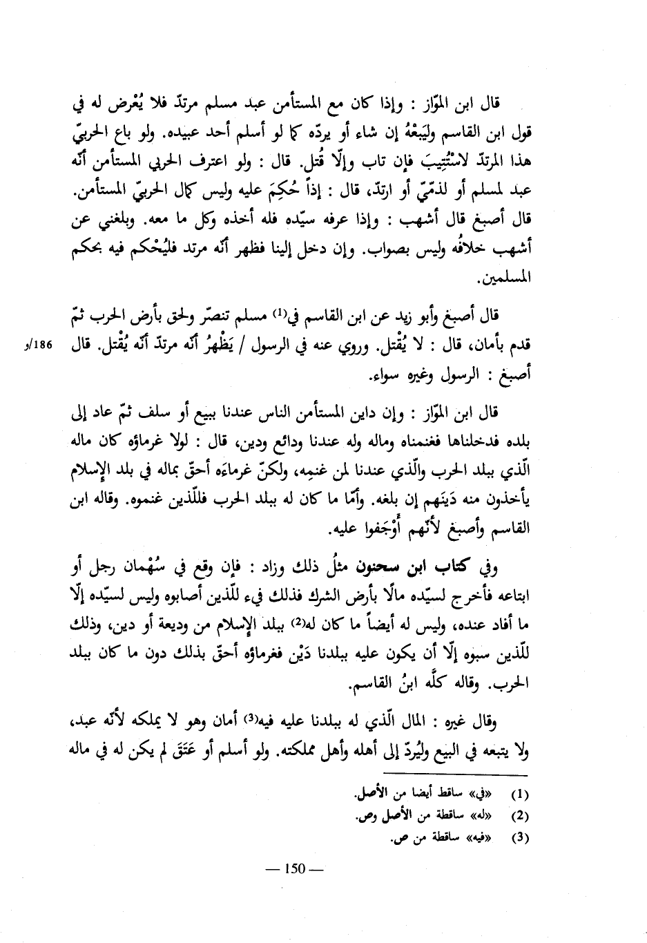 قال ابن حبيب وقال مالك (فى الموطأ: قال الله تعالى فى كتابه (وأعدوا لهم ما استطعتم من قوة ومن رباط الخيل) قال مالك: فأرى البراذين والهجن من الخيل إذا أجازها الوالى. قال مالك: ولم أزل أسمع ان للفرس سهمين وللرجل سهم، ولم أسمع بالقسم إلا لفرس واحد.