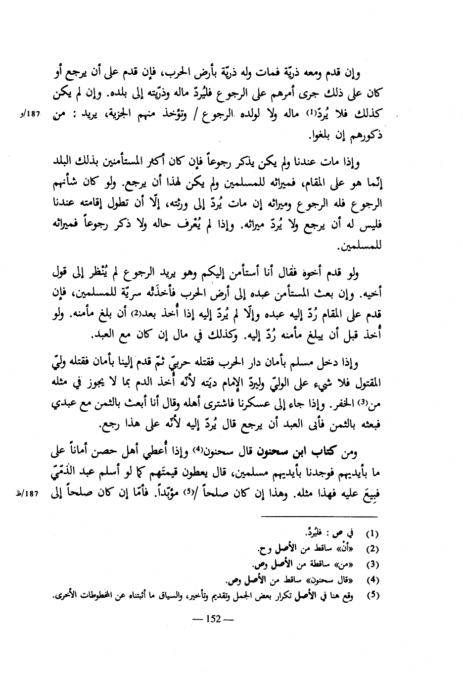 من كتاب بن سحنون قال سحنون قال مالك وأصحابنا: إذا دخل الجيش دار الحرب، فمن دخل منهم فارساً فهو فارس. ومن دخل منهم راجلاً فهو راجل وما مات من فرس أو رجل قبل الغنيمة فلا سهم له. ولو أخذ العدو فرسه قبل الغنيمة ثم رجع إليه فإنما يسهم له من كل ما غنموا بعد رجوعه إليه، وكذلك لو أسر ثم تخلص فإنما يسهم له فيما غنموا من يوم خلاصه. وكذلك الراجل يفيد فرساً فمن يوم يفيده يسهم له. وإذا قاتل فقتل فرسه ثم أسر ثم