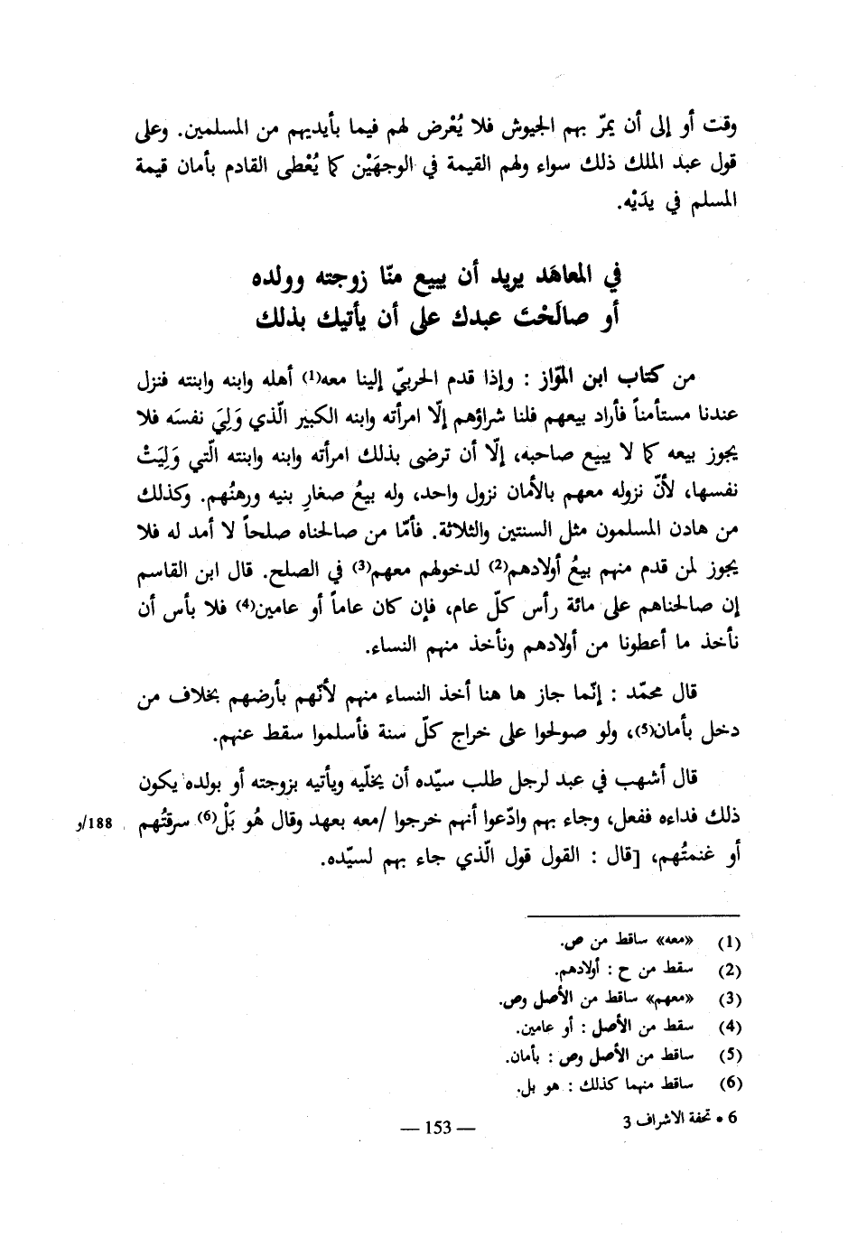 غنموا بعده من ذلك القتال غنيمة ً ثم غنموا آخرى ثم تخلص وجاءهم فله سهمه فى غنيمة قتالهم الذى أسر فيه على أنه فارس، (ولا سهم له فيما غنموا بعد ذلك فى أسره. وإما ما غنموا بعد خلاصه فله فيه سهم) راجل، إلا أن يتخلص وهو فارس فله من يومئذ سهم فارس. وكذلك لو قفل أصحابه وجاء آخرون فتخلص إليهم فله مع هؤلاء من يوم تخلص إما فارس أو راجل، وله فى الأولين سهم فارس. ومن كتاب ابن حبيب: ومن أوجف فارساً ثم نفق فرسه قبل مشاهدة القتال لم يسهم لفرسه، ولو مات هو حينئذ لم يسهم له. ومن أوجف راجلاً ثم أفاد فرساً عند مشاهدة القتال بشراء أو كراء أو عارية أو بتعد فقاتل عليه فله سهم الفرس. وحد ذلك عند مالك مشاهدة القتال. وإما ابن الماجشون. فبالإيجاف يجب عنده وإن لم يشاهد قتالاً، فيوجب بالإيجاف لمن مات أو قتل من رجل أو فرس ما توجبه المشاهدة. ومن أوجف عنده راجلاً ثم أفاد فرساً حتى يمكن كونه بيده بملك أو كراء أو تعد فله سهمان الفرس. فإما إن ألفى فرساً عند زحمة القتال من خيل العدو أو خيل المسلمين فركبه بأحد هذه الوجوه فلا يأخذ سهميه، وسهماه لصاحب الفرس إلا أن يكون من خيل العدو فلا سهمان له. وإنما الفارس الداخل على فرس أو يفيده بحدثان ذلك وقبل شهوده القتال بأيما وجه وإن كان باعتداء إذا تمكن كونه بيده واستفرد دون الموجف عليه. قال ابن حبيب: وقول ابن الماجشون أقيس وبه أقول. وقول مالك استحسان وقال به أكثر أصحابه.