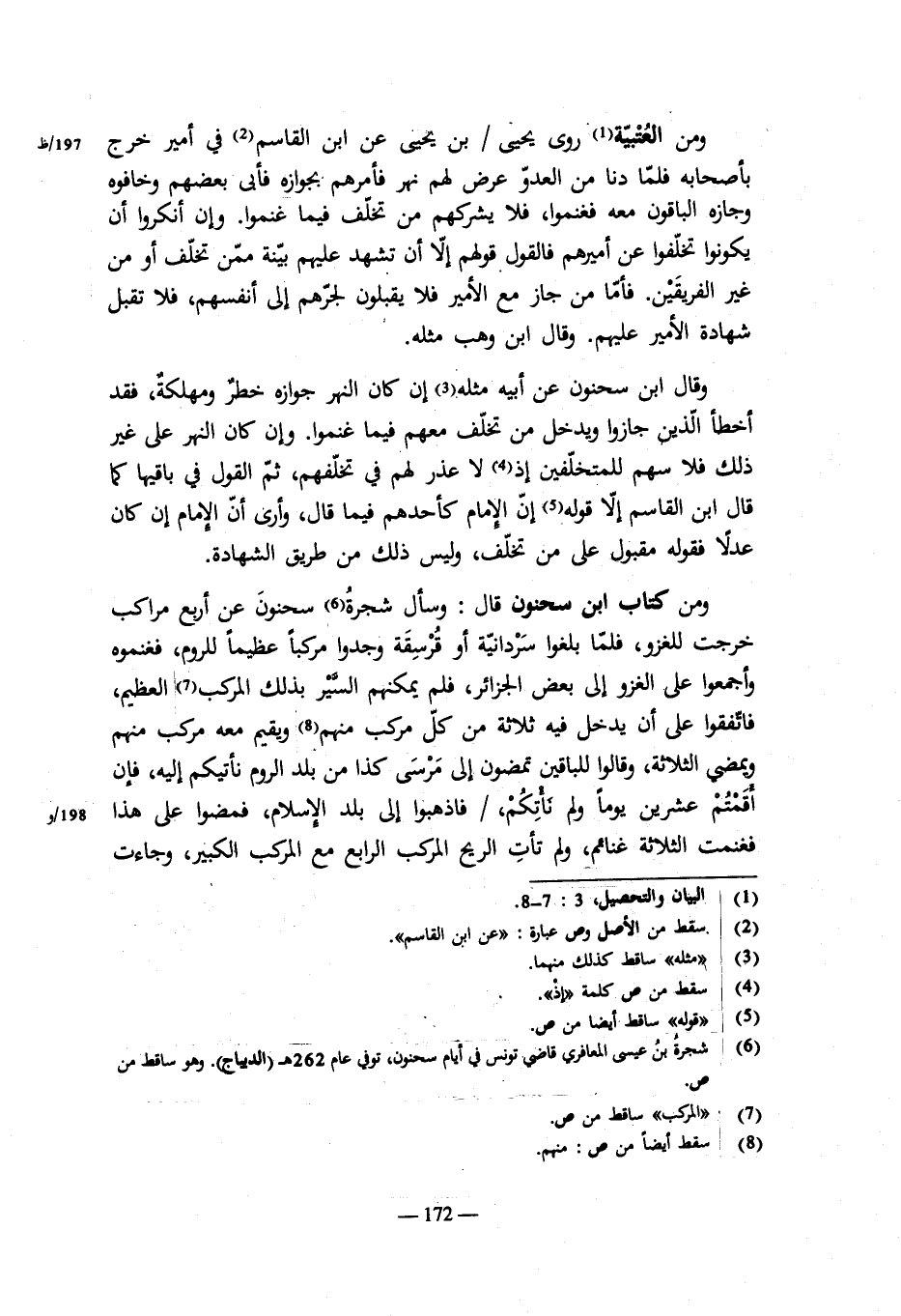 وقال عبد الملك: الغنيمة بين كل من خرج يريدهم، وقول أشهب أحب إلينا. وقد قال مالك فى الروم يغيرون على ما قرب من المصيصة فيقال: يا خيل الله اركبوا، فيخرج أهل النشاط فيلقون العدو فى أدنى أرض الروم، فيظهرهم الله بهم ويغنمون: أنه لا يدخل فى ذلك ما لم يخرج من المصيصة.