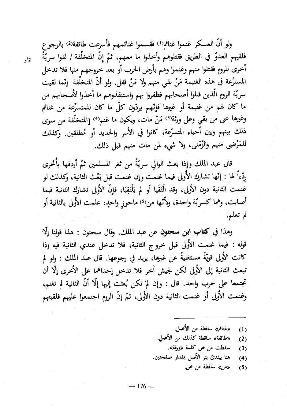 إلا ترى لو كان للعدو فى جزيرة من بحر الإسلام وبينهم وبين عسكر المسلمين يسير مثل عرض دجلة، فركب إليهم طائفة فغنموا على أن بقية أهل