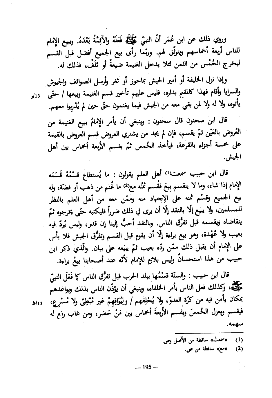من كتاب ابن حبيب قال النبى صلى الله عليه وسلم: لا تغلوا، فإن الغلول عار ونار وشنار، وأطلق الوعيد فى شراك أو شراكين، وفى عقال من الغلول، وترك الصلاة على رجل عليه خرازات من خرز يهود غلها وقال: صلوا على صاحبكم. قال أهل العلم: فلا تترط الصلاة عليه لقوله عليه السلام صلوا على صاحبكم. وإذا جاء تائباً أخذ ذلك منه ولا نكال عليه. فإن تفرق الجيش تصدق عنهم. وإن ظهر عليه قبل أن ينتصل عاقبه عقوبةً شديدةً. وإن انتصل منه عند الموت فإن كان أمراً قريباً ولم يفترق الجيش فهو من رأس ماله. وإن كان أمراً قد طال آخرج من ثلثه.