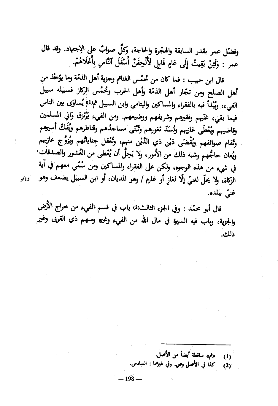 قال ابن المواز (قال ابن القاسم): ولو أحرز مثل هذا فى المغنم ثم احتاج إليه رجل فله أخذه. وكذلك الثوب يلبسه ودابة يركبها ويرد ذلك إذا استغنى عنه. وما احتاج إليه من غير ذلك فله أخذه بعلم من يلى المغنم أو بغير علمه ويرد ما استغنى عنه. وإن فات الأمر باع ذلك وتصدق به. وله حبس ما ليس له ثمن أو ما ثمنه الدرهم وشبهه ولا يبيعه.