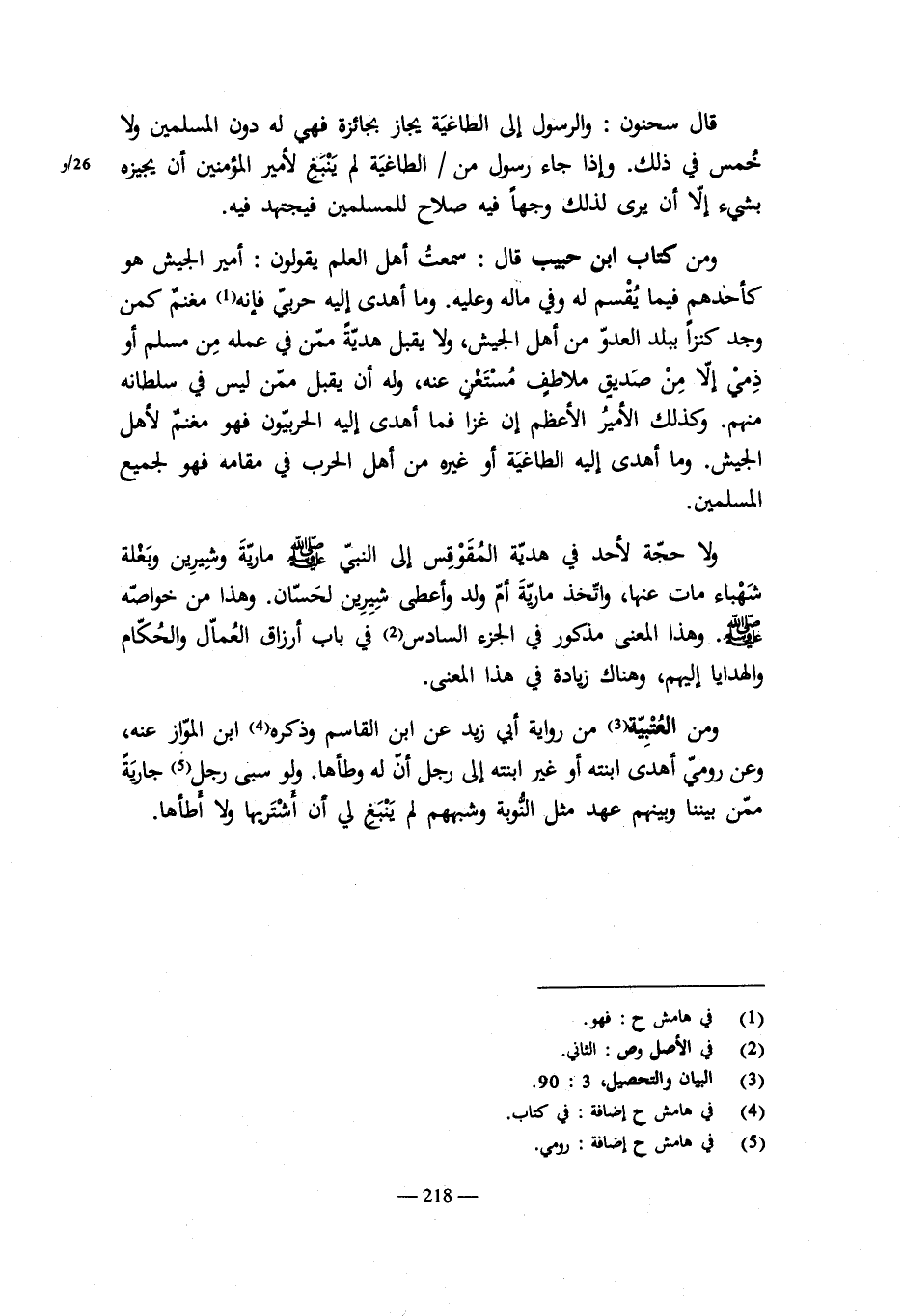 قال سحنون: وكيف يجوز أن يقول: ما أصبتم فهو بينكم بالسواء بعد الخمس، وفى هذا إبطال السهام التى أوجبها رسول الله صلى الله عليه وسلم، يريد: فى تفضيل الفارس.