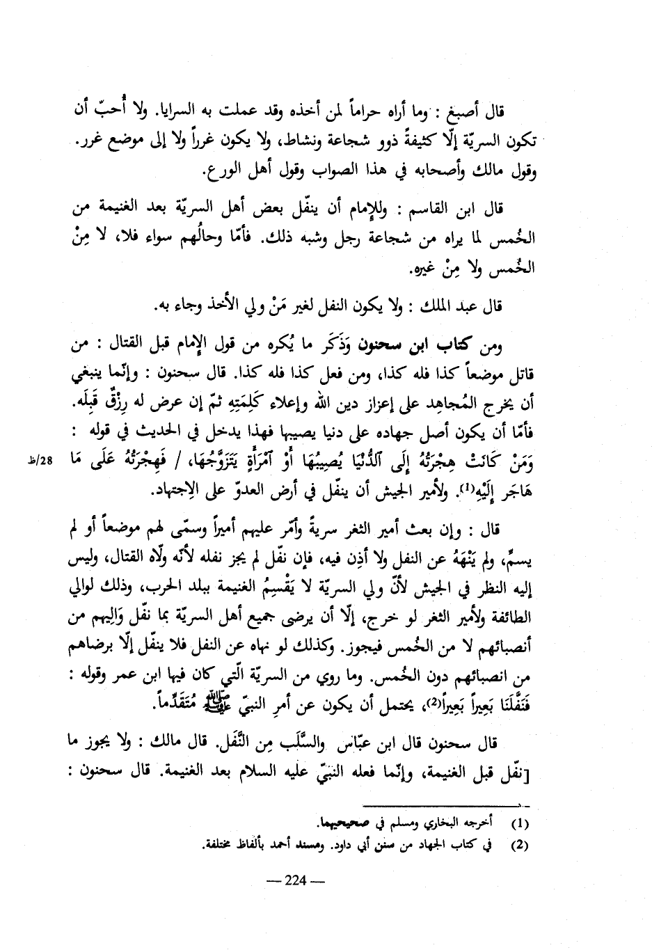 قال سحنون: وإن بعث الإمام سرية على الربع بعد الخمس على مذهبه فقدموا غانمين، فلم يأخذوا النفل حتى مات أو عزل وولى من يرى قولنا، فأنه لا ينفذ ذلك إلى الحصن ونحو ذلك مما لا نراه. قال ابن سحنون: وأنا أرى أنها قضية نافذة لا ترد، قبضوا ذلك أو لم يقبضوه.
